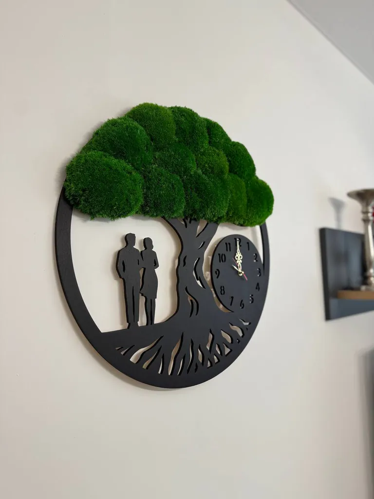 Tieto fascinujúce machové nástenné hodiny Strom života s párom sú omnoho viac než len ukazovateľom času; predstavujú hlbokú poctu láske, rastu a večnému prepojeniu. Dizajn spája mystický motív Stromu života s romantickou siluetou páru a s upokojujúcou, bezúdržbovou prirodzenosťou machu. Samotné hodiny sa stávajú dominantným prvkom každého priestoru a prinášajú silné, emotívne machové vyjadrenie.