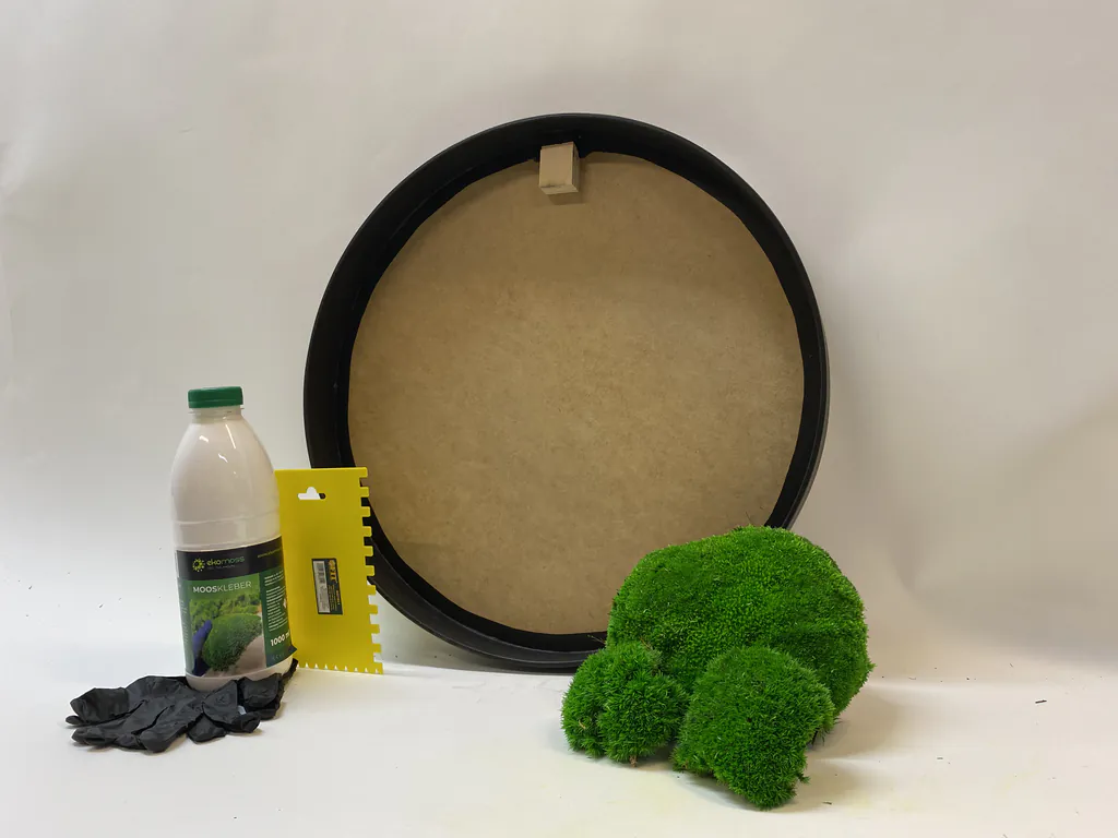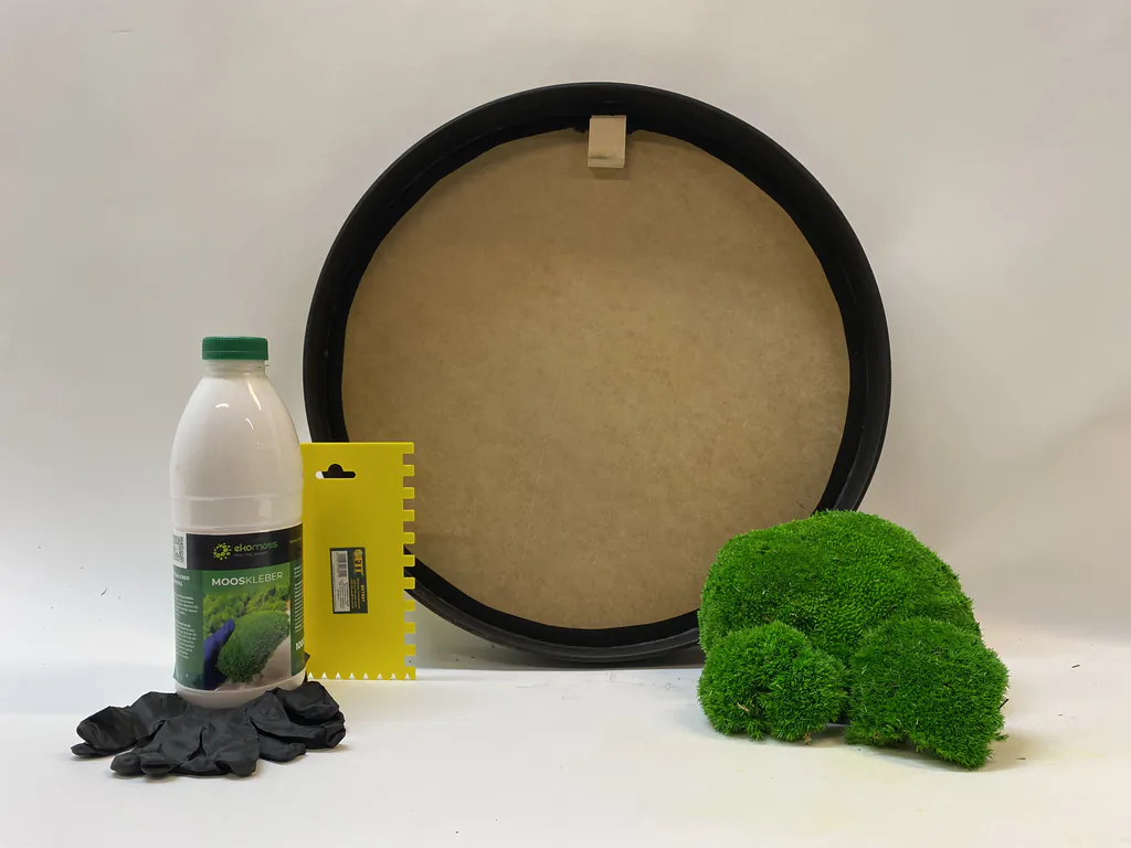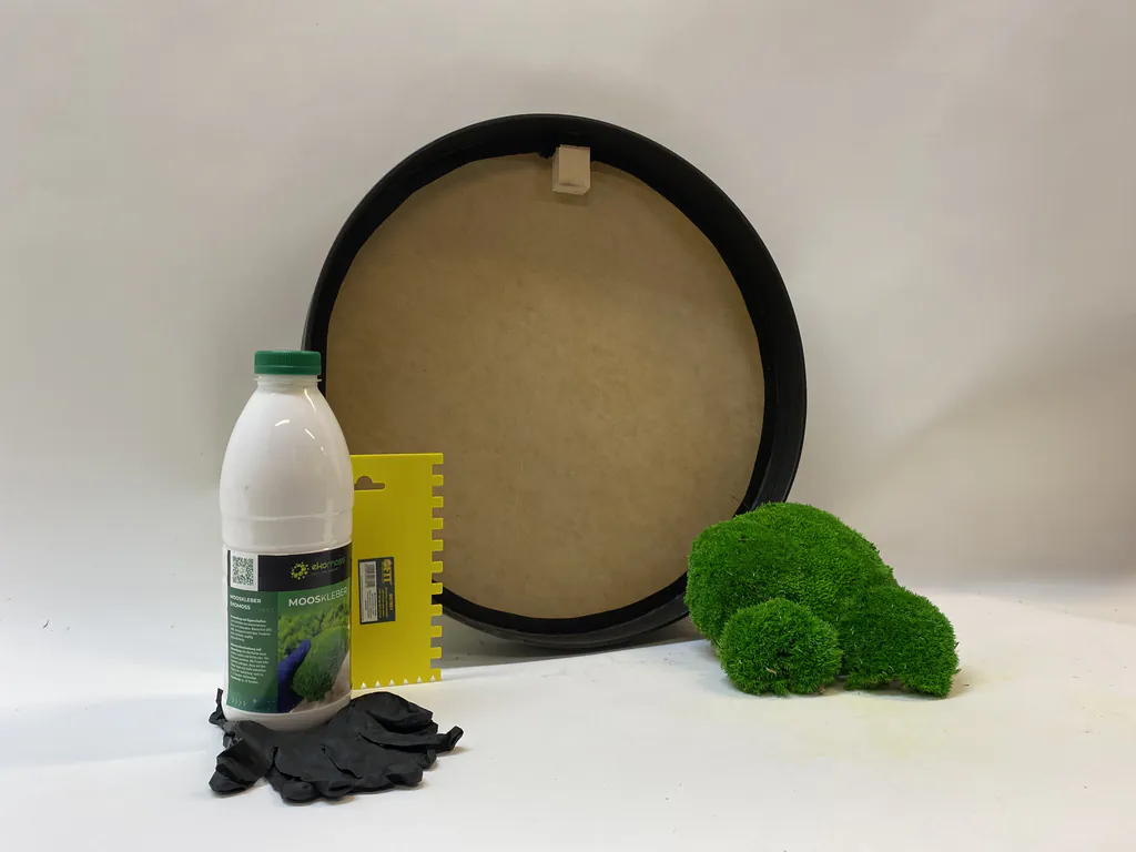 V balení nájdete aj všetky potrebné pomôcky – latexové rukavice a špachtľu na rovnomerné nanášanie lepidla. Naše špeciálne lepidlo je bez zápachu a zaručuje silné a trvácne spojenie medzi machom a rámom.