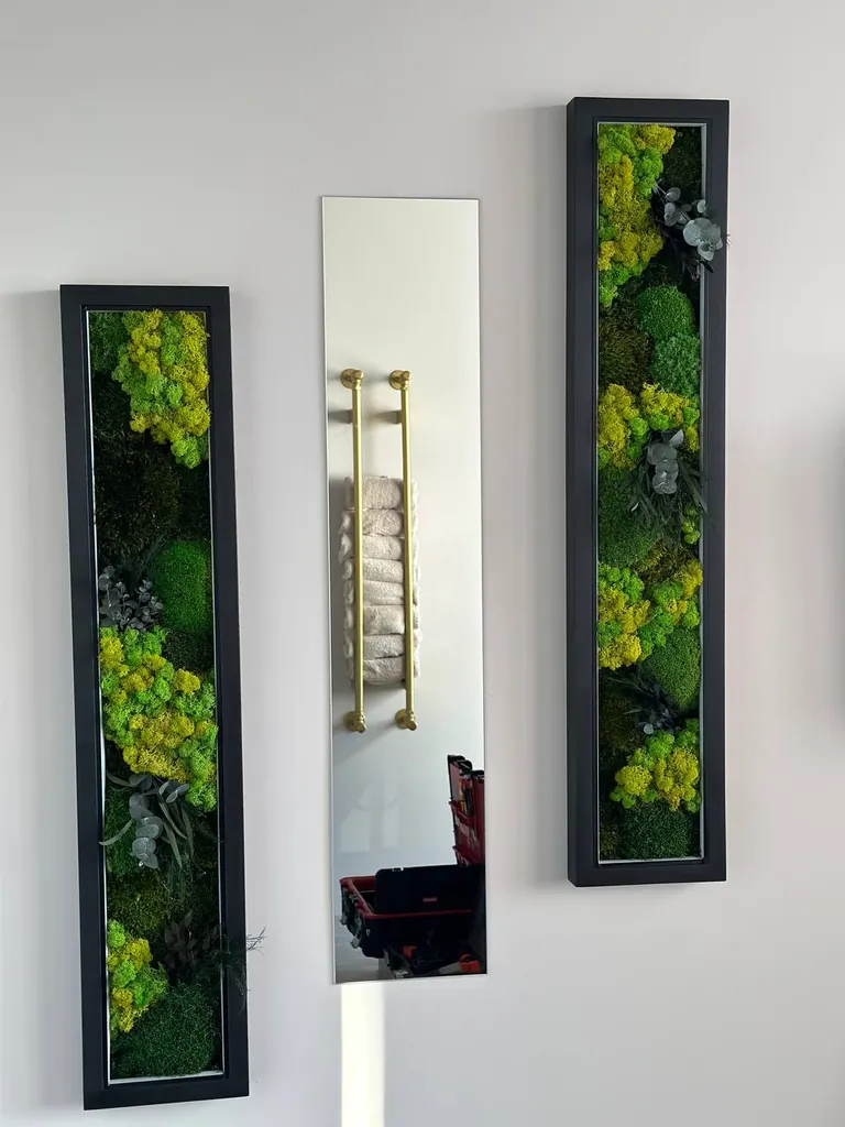 Objavte krásu prírody vo vašom domove so setom machových obrazov a zrkadlom – majstrovské dielo prírodného umenia, ktoré poteší oko aj upokojí myseľ.